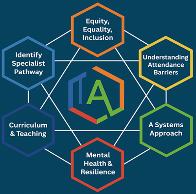 Through our ongoing year-long implementation programme, and five year long-term strategy, we deliver measurable impact by creating an inclusive attendance culture and improving outcomes for all children and young people. We are outward-facing in our approach and value working regionally and nationally, through a systems-led model with other schools and external agencies. We continually strengthen and enhance our offer year on year. This work is underpinned by ongoing accredited CPD for staff each year, ensuring sustainable change, stronger outcomes for children and young people, and a deeply embedded culture of collective responsibility.