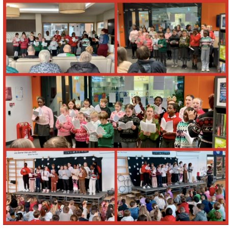 The school choir performed in the library, Jackson Gardens and to the whole school